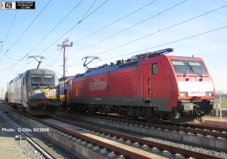 | Электровозы 1216-050 и 189-073, Хофддорп, высокоскоростная линия Амстердам - Роттердам, Нидерланды Автор: Dirk Otte | Фото сделано 8.II.2008, опубликовано 20.II.2008.