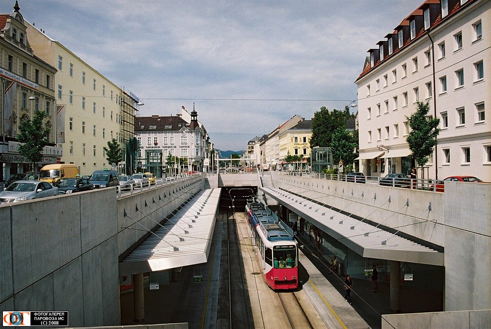 | Трамвай "Бомбардье" GT10 (серия 3) № 55 на станции "Герц-Йезу-Кирхе" (Herz-Jesu-Kirche), г. Линц, Австрия Автор: Vladislav Prudnikov | Фото сделано 23.VIII.2007, опубликовано 18.III.2008.