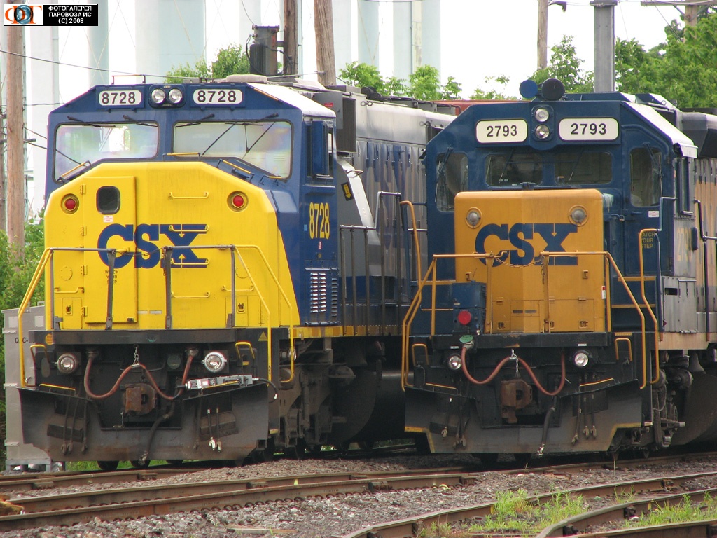 Тепловозы компании "CSX" SD60М №8728 и GP40-2 №2793 на ст. Лэнсдейл
