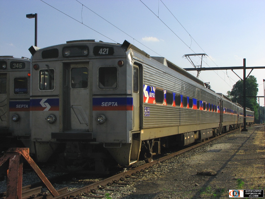 | Электросекция класса "Силверлайнер-4" №421 на отстое на ст. Дойлестаун - конечной пригородного маршрута R5, США/Пенсильвания Автор: Женя | Фото сделано 8.VI.2008, опубликовано 4.I.2009.