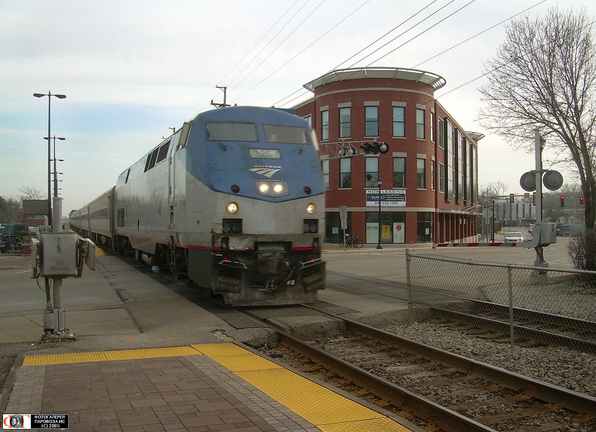 Здесь кроме платформы и переезда все изолированно. Поэтому поезда здесь могут быстро идти. В Чикаго есть места, где подъездные пути идут по середине улицы и вагоны стоят как трамваи. Этот поезд отправлением из Чикаго в 3:15. -- Роман ,