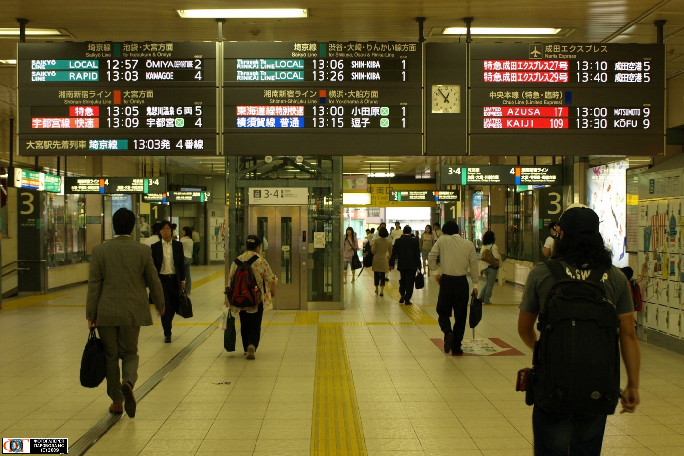 | Таблица расписания на проходном пути к платформам, ст. Синдзюку (Shinjuku sta), Токио, Japan Author: bangkokdave | Picture taken: 19.IX.2008, published 14.III.2009.