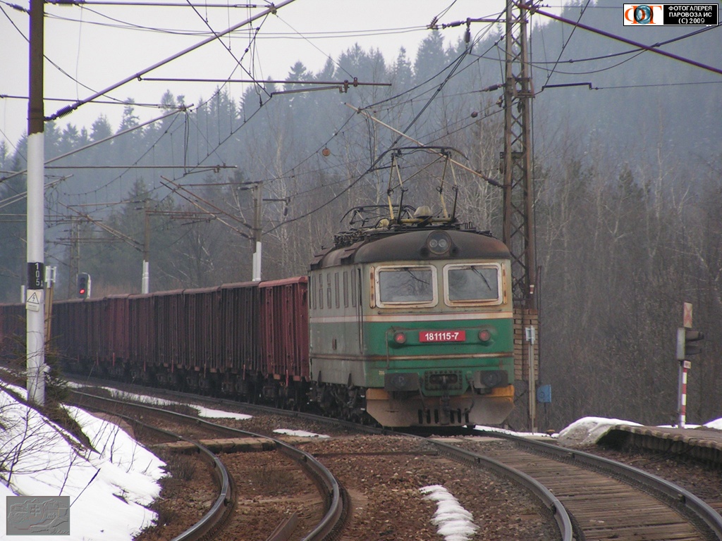 | Электровоз 181.115-7 толкает грузовой поезд. Cвpчинoвeц, Словакия Автор: zoric | Фото сделано 22.III.2009, опубликовано 1.IV.2009.