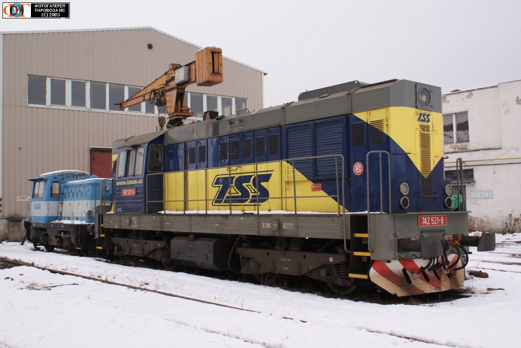 | Тепловозы 742.521-8 и T211-1742, Брно, Чехия Автор: Антон | Фото сделано 21.II.2009, опубликовано 30.IV.2009.