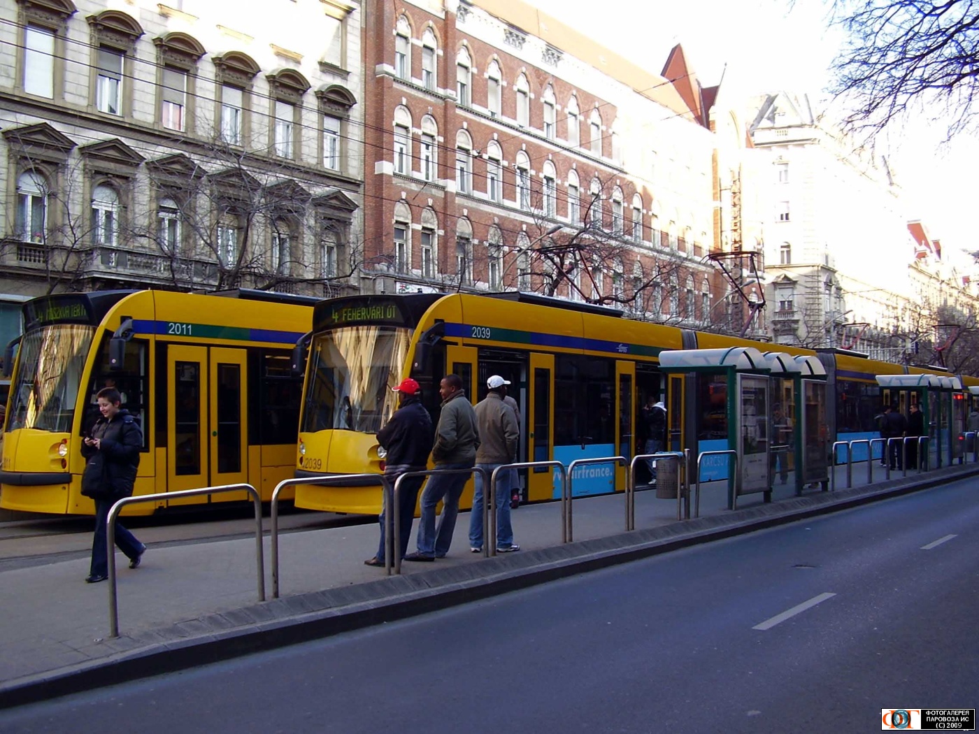 | Трамваи "Сименс" на одной из остановок Будапешта, Венгрия Автор: Roman | Фото сделано 21.III.2009, опубликовано 30.V.2009.