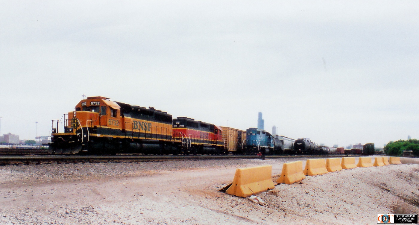 | Тепловозы компании BNSF SD40-2-6732 и GP40M-3002 на станции Вестерн-Авеню. Чикаго, USA/Illinois Author: Роман | Picture taken: 18.VI.2009, published 1.VII.2009.