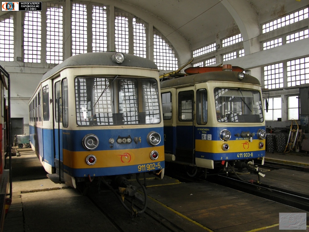 | Вагон 911.902-5 и электромотриса 411.903-8. Депо Tрeнчианскa-Тепла, Словакия Автор: zoric | Фото сделано 5.VII.2009, опубликовано 13.VII.2009.