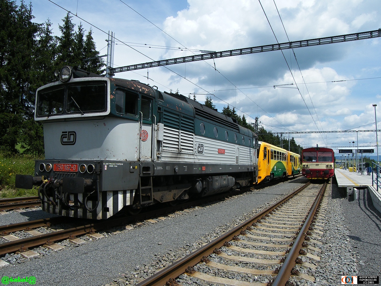 | Тепловоз 750.162-0 с поездом на Усти-над-Орлици (Ústí nad Orlicí) проезжает ст. Лихков (Lichkov), Чехия Автор: šakal | Фото сделано 6.VII.2009, опубликовано 25.VII.2009.