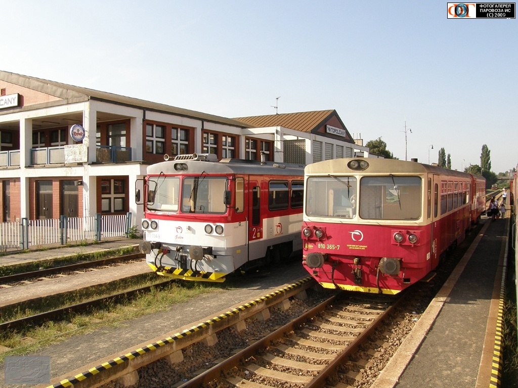 | Aвтомотрисы 813.004-9 и 810.365-7. Cтанция Tопольчаны (Topoľčany), Словакия Автор: zoric | Фото сделано 17.VIII.2009, опубликовано 21.VIII.2009.
