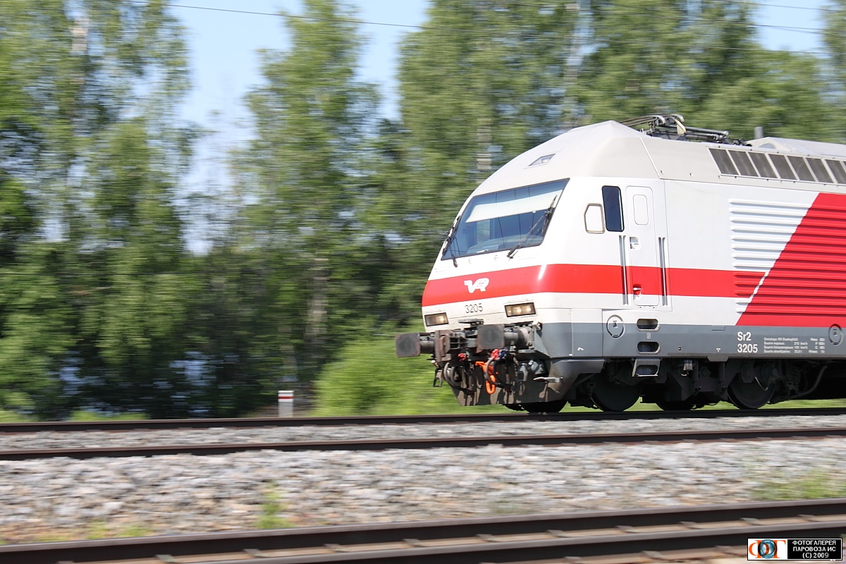 | Электровоз Sr2-3205 следует через о.п.Сяксярви (Säksjärvi), Финляндия Автор: Хайми Л. | Фото сделано 28.VI.2009, опубликовано 12.IX.2009.
