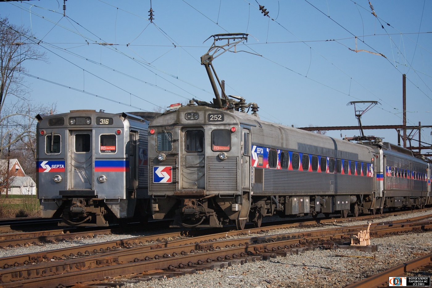 | Головные вагоны электропоездов "Silverliner II" № 252 и "Silverliner IV" № 316 компании "SEPTA". ст. Вест-Трентон, США/Нью-Джерси Автор: Александр Белоусов | Фото сделано 22.XI.2009, опубликовано 6.XII.2009.