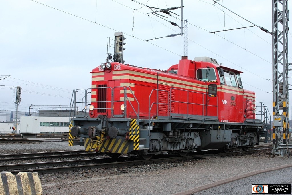 | Маневровый тепловоз Dr14-1866 с новым номером UIC и дистанционным управлением. Ст.Тампере, Финляндия Автор: Хайми Л. | Фото сделано 28.XI.2009, опубликовано 4.I.2010.