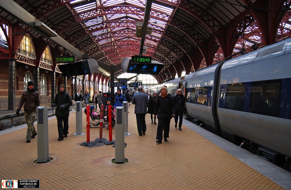 | Поезд №1045 сообщением Карлстад - Хельсингёр прибыл на вокзал Копенгаген-Центральный, Дания Автор: Stjärna | Фото сделано 23.I.2010, опубликовано 1.II.2010.