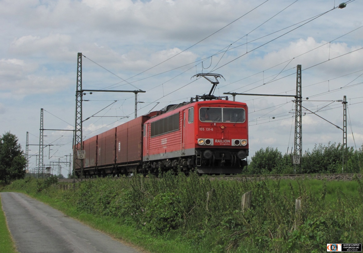 | Электровоз 155-131 с грузовым поездом на перегоне (?) Ольде - Реда (Oelde - Rheda), Германия/Северный Рейн-Вестфалия Автор: Konstantin Schendrik3 | Фото сделано 13.VII.2009, опубликовано 10.II.2010.