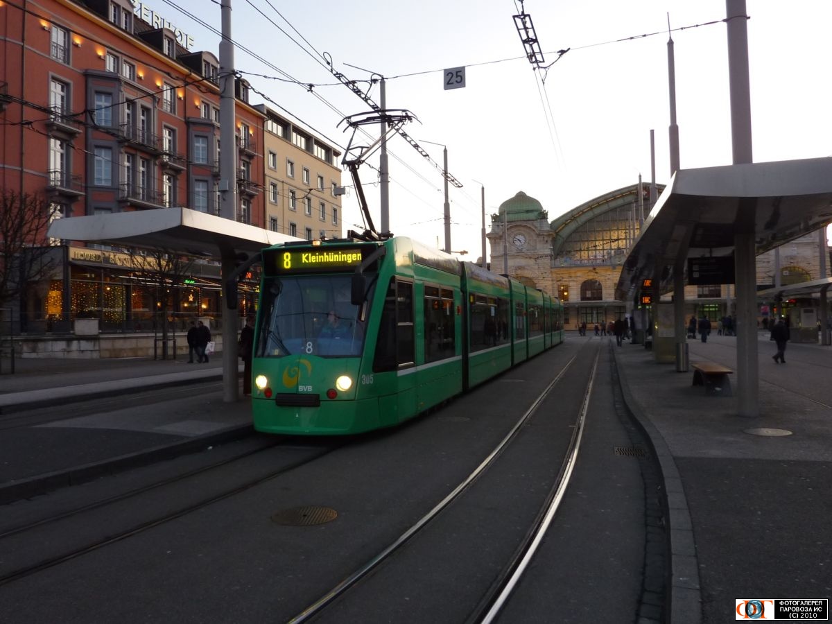 | Трамвай 8 маршрута на ост. Вокзал (Bahnhof SBB), Базель, Швейцария Автор: Александр ТЧ-15 | Фото сделано 2.I.2010, опубликовано 5.III.2010.