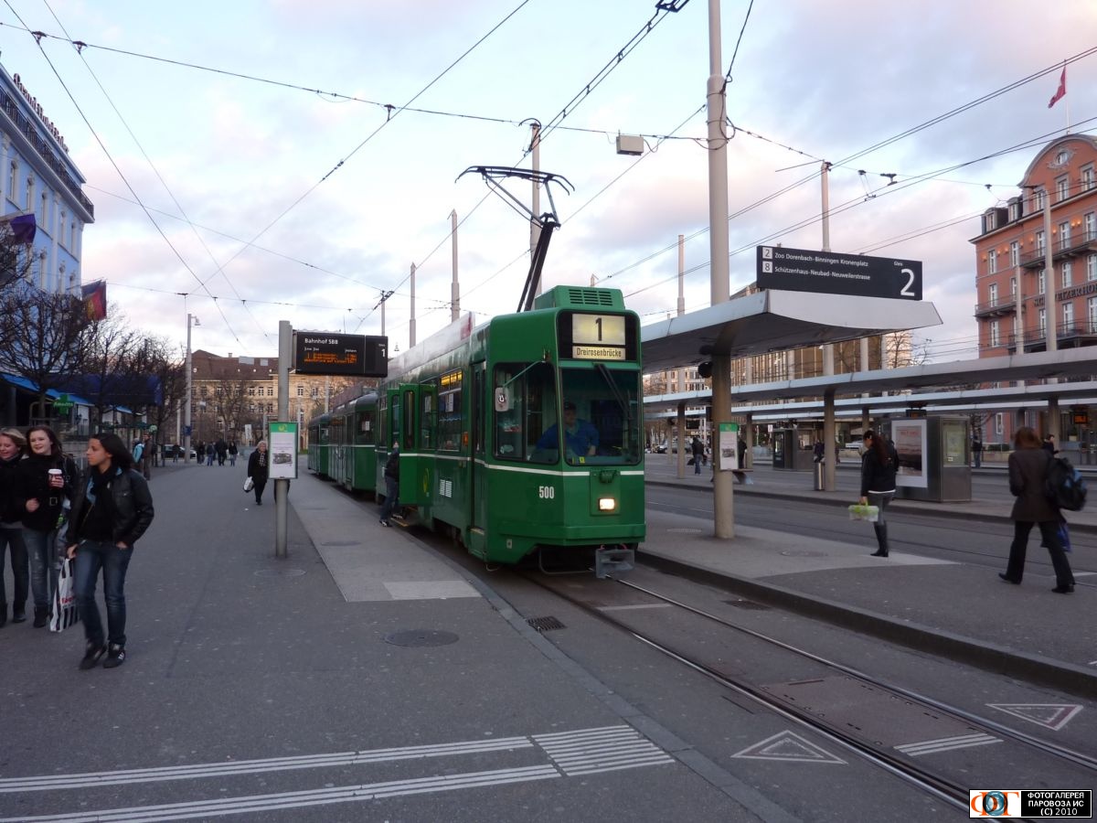 | Трамвай 1 маршрута на ост. Вокзал (Bahnhof SBB), Базель, Швейцария Автор: Александр ТЧ-15 | Фото сделано 2.I.2010, опубликовано 6.III.2010.