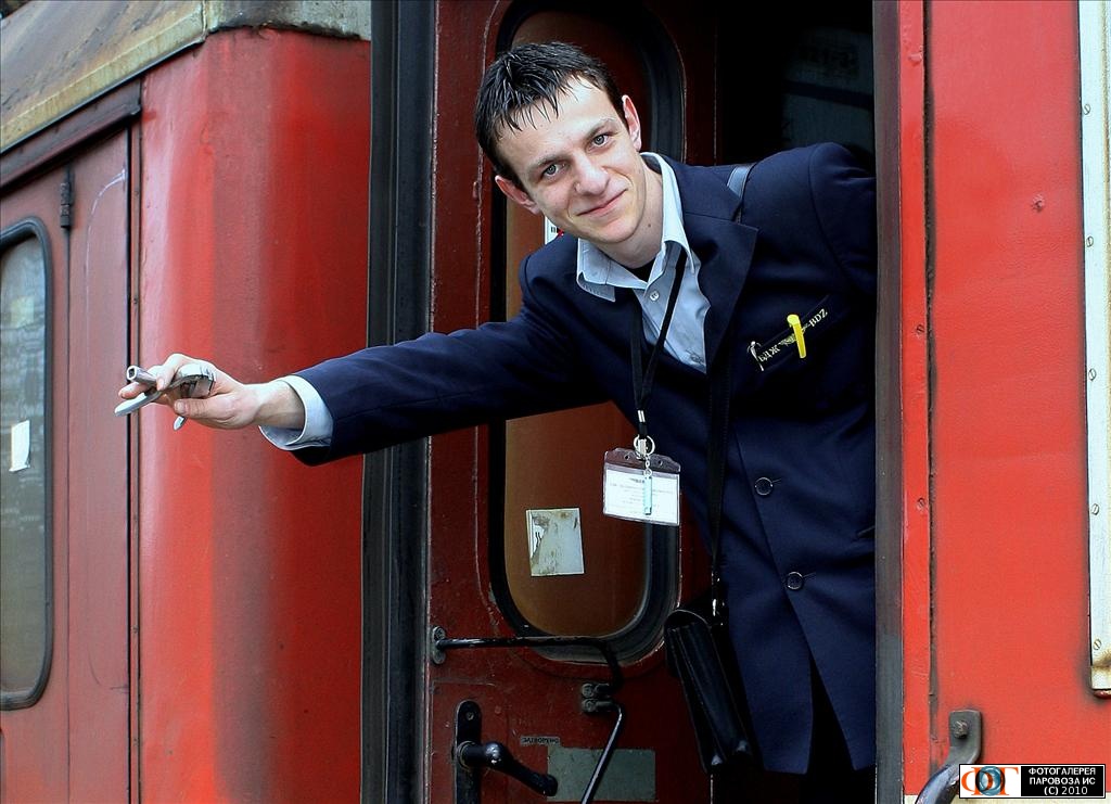 | Кондуктор Венцислав Венциславов, пасажирский поезд Шумен - Варна, Болгария Автор: Борислав Борисов | Фото сделано 24.III.2010, опубликовано 25.III.2010.