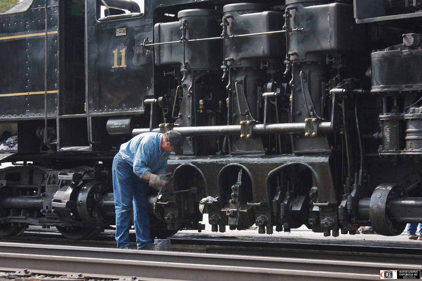 | "Будни паровозной бригады" Паровоз Shay-11 класса С90 типа 3-Truck компании "Cass Scenic Railroad" 1923 года. Касс, США/Западная Виргиния Автор: Александр Белоусов | Фото сделано 19.IX.2009, опубликовано 27.III.2010.