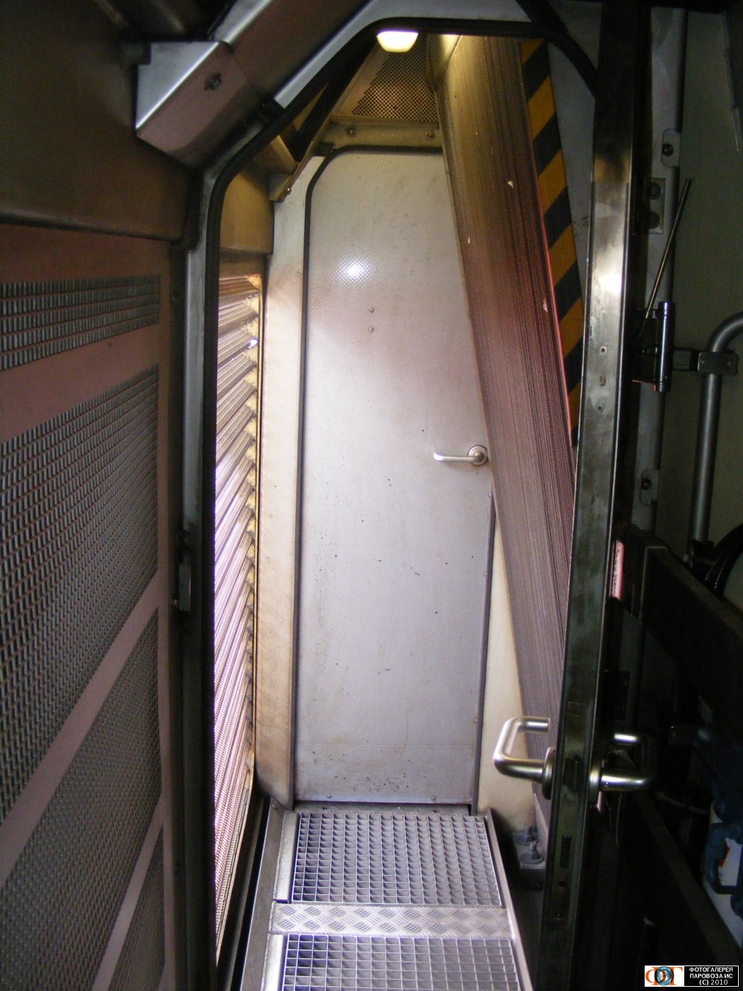 | Левая секция холодильника тепловоза 246-005. Вид из дизельного помещения в сторону первой кабины, Германия/Нижняя Саксония Автор: Машинист двухэтажного бичевоза | Фото сделано 27.IV.2010, опубликовано 4.V.2010.