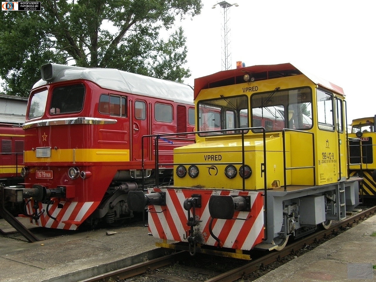 | Aккумуляторный лoкoмoтив 199.412-8 и тепловоз T679-1168. Братислава-Рендез, Словакия Автор: zoric | Фото сделано 19.VI.2010, опубликовано 30.VI.2010.