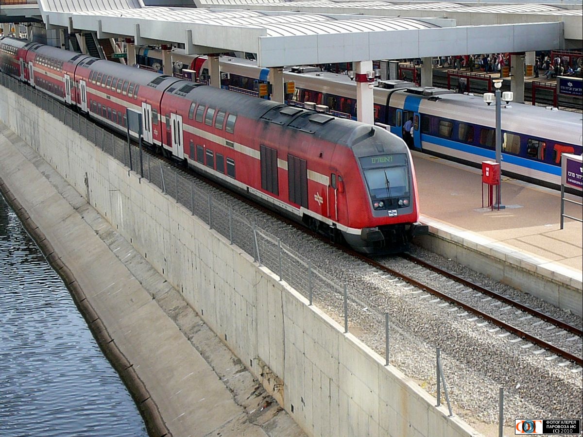| Двухэтажный поезд "Бомбардье" и дизель-поезд IC3 на станции Тель-Авив-Савидор-мерказ, Israel Author: Алекс | Picture taken: 21.IV.2008, published 1.VIII.2010.