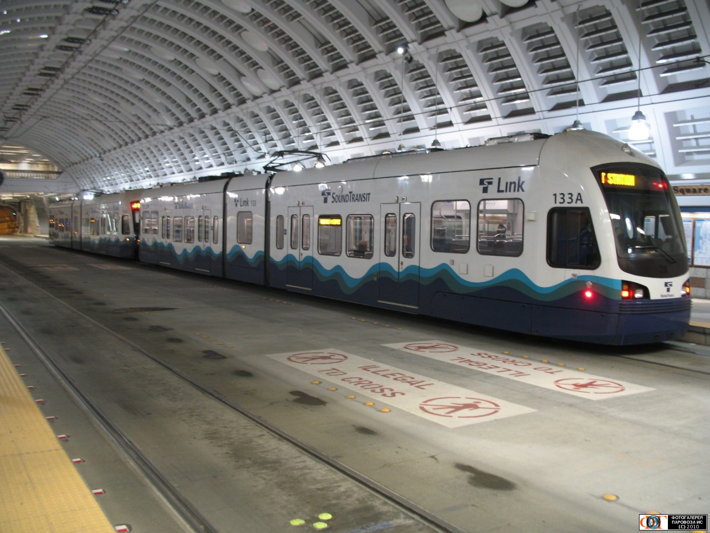 | Трамвай "Саунд-Транзит", идущий в направлении аэропорта, ст. "Пайонир-Сквер" (Pioneer Square), Сиэттл, США/Вашингтон Автор: A4-500 | Фото сделано 28.XI.2010, опубликовано 6.XII.2010.