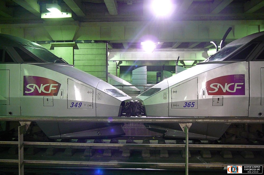 | Сцепка из поездов TGV №№ 349 и 365 на вокзале Монпарнас, Париж, Франция Автор: Алекс | Фото сделано 3.X.2009, опубликовано 19.XII.2010.