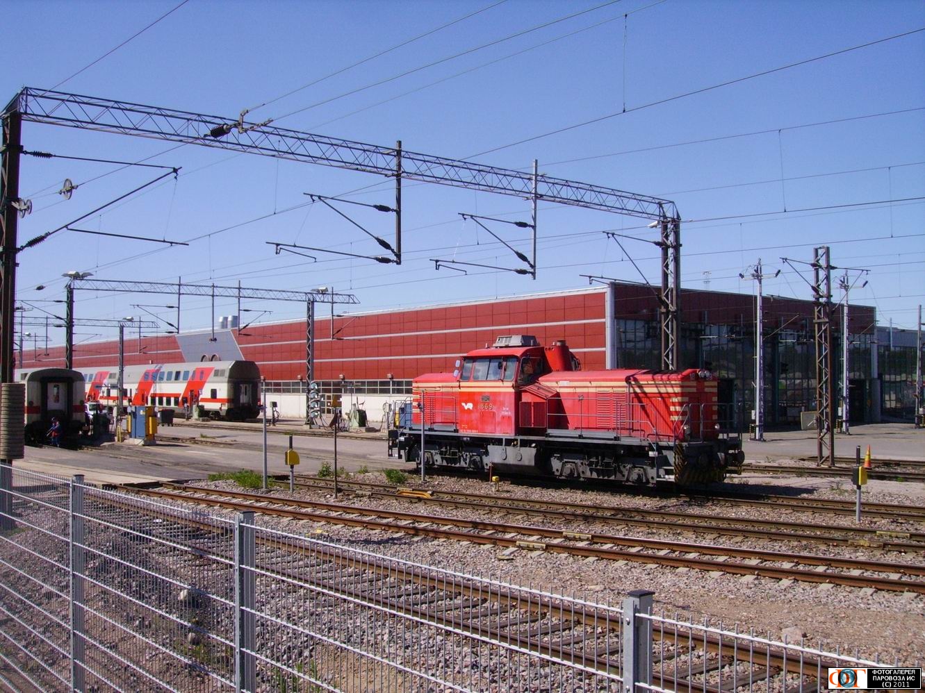 | Тепловоз Dr14-1869 в депо Илмала, Хельсинки, Финляндия Автор: Шитов Дмитрий | Фото сделано 3.VI.2011, опубликовано 5.VI.2011.