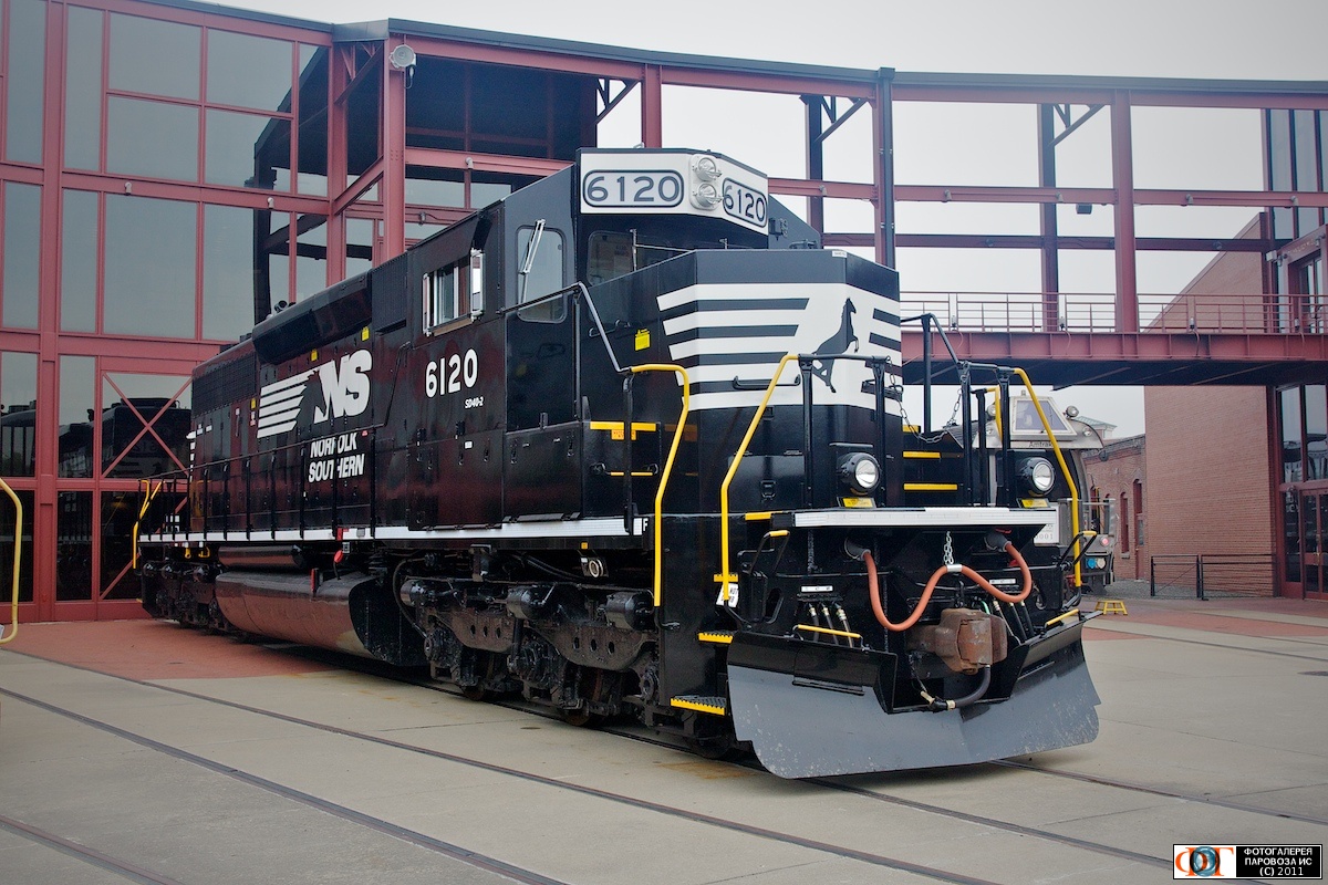 | Тепловоз EMD SD40-2-6120 компании Norfolk Southern. Паровозный музей "Стимтаун", г. Скрентон, США/Пенсильвания Автор: Александр Белоусов | Фото сделано 4.IX.2011, опубликовано 9.IX.2011.