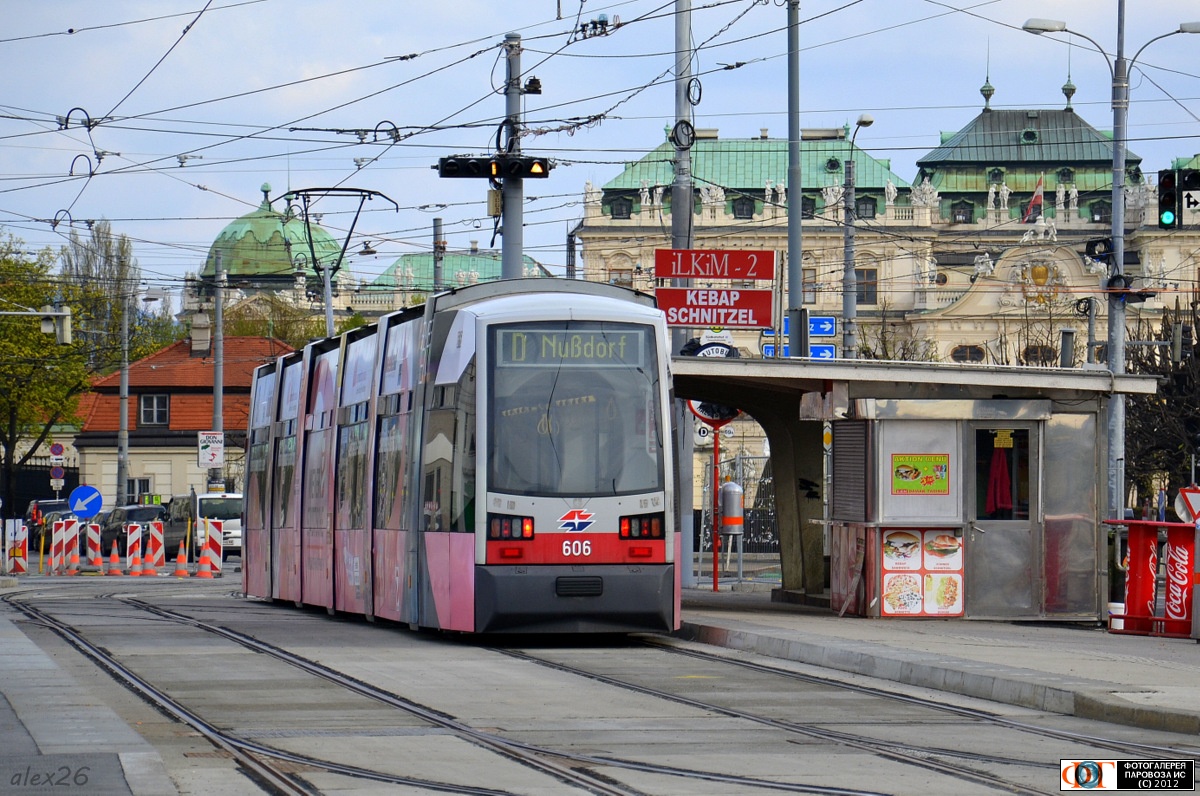 | Трамвай "Сименс-ULF-B" № 606, конечная маршрута D у Южного вокзала, Вена, Австрия Автор: Алекс | Фото сделано 13.IV.2012, опубликовано 17.VIII.2012.