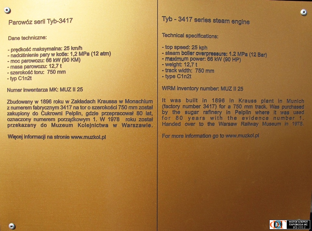 | Краткая история паровоза Tyb-3417, музей УЖД, Сохачев, Польша Автор: ВИКТОР | Фото сделано 9.VIII.2012, опубликовано 26.VIII.2012.