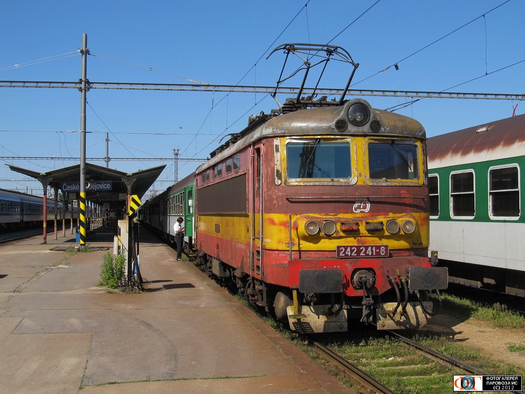| Электровоз 242.241-8 с пассажирским поездом на станции Ческе-Будеёвице (České Budějovice), Czech Republic Author: Дока | Picture taken: 7.IX.2012, published 17.I.2013.