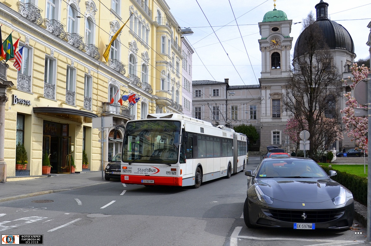 | Троллейбус "Ван Хоол-AG 300T" № 290 и двухместный "Феррари", Макартплац, Зальцбург, Австрия Автор: Алекс | Фото сделано 10.IV.2012, опубликовано 7.II.2013.