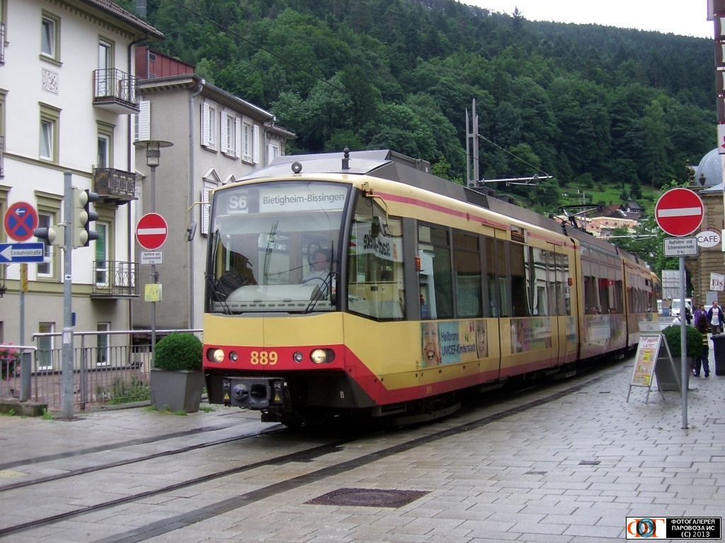 | Двухсистемный трамвай Siemens GT8-100D/M-2S № 889, Бад-Вильдбад (Bad Wildbad), Германия Автор: Алексей | Фото сделано 14.VII.2010, опубликовано 30.X.2013.