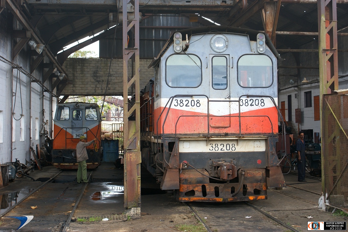 | Тепловоз ТГМ8Эк-38208 в депо Квинтин-Бандерас (Quintin Banderas), провинция Вилья-Клара (Villa Clara), Куба Автор: Ластовка М.О. | Фото сделано 3.II.2012, опубликовано 15.XI.2013.