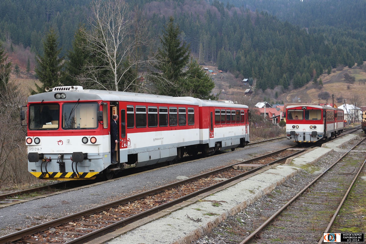 | Рельсовые автобусы 813/913-014 и 811-004 на станции Подбиель (Podbiel), Словакия Автор: RUNAWAYTRAIN | Фото сделано 7.I.2014, опубликовано 11.III.2014.