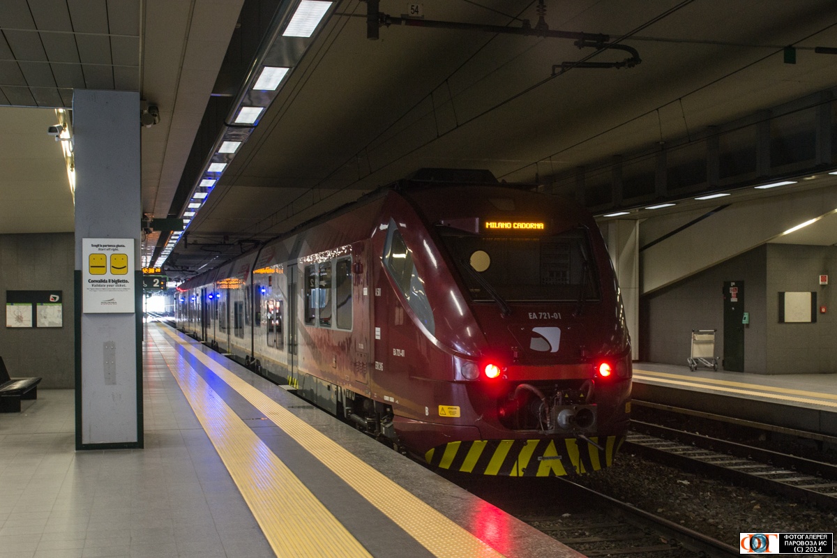 | Электропоезд EA721-01 на станции Аэропорт-Мальпенса, Милан, Италия Автор: Бурундук | Фото сделано 19.IV.2014, опубликовано 30.V.2014.