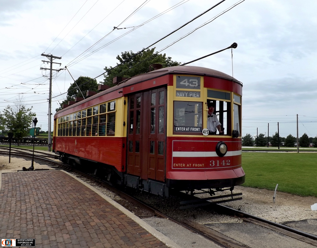 | Трамвай Chicago Surface Lines 3142 1923 года выпуска. Иллинойский железнодорожный музей. Юнион, США/Иллинойс Автор: Роман | Фото сделано 5.VII.2014, опубликовано 10.VII.2014.