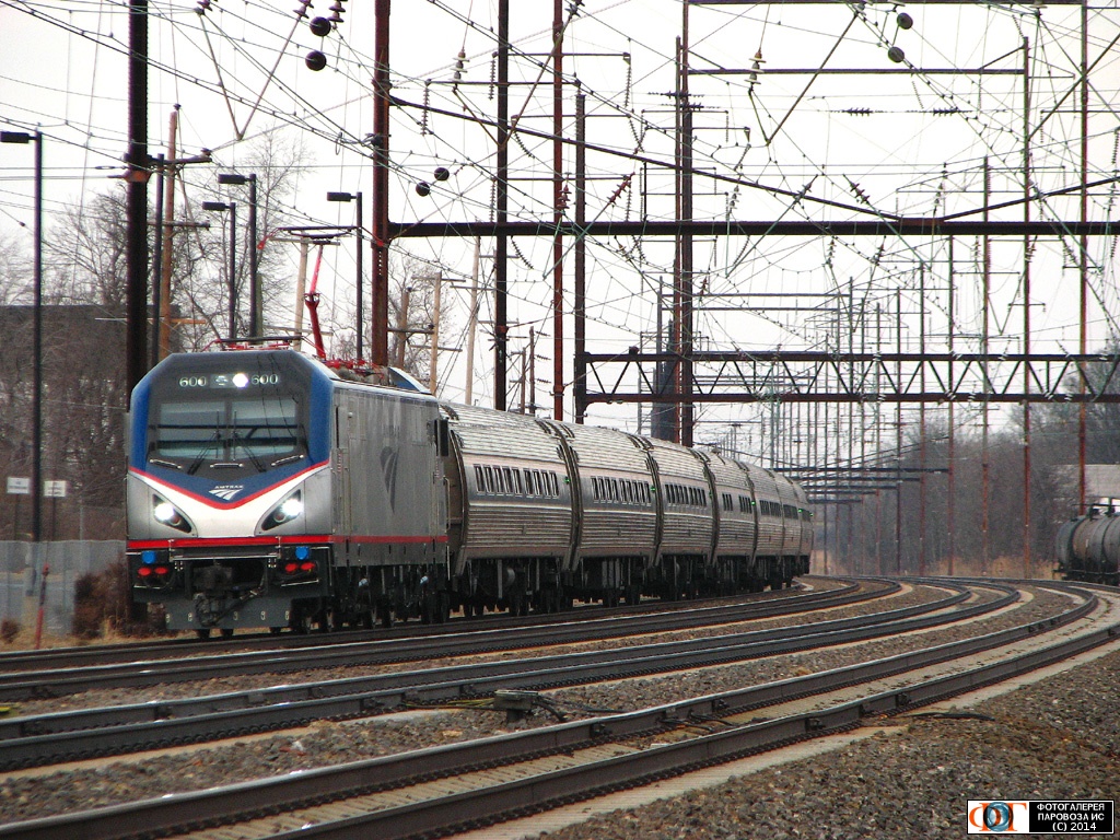 | Электровоз компании "Амтрак" ACS64-600 проходит пригородную ст. Корнвеллс-Хайтс с поездом №129 Нью-Йорк - Вашингтон, USA/Pennsylvania Author: Женя | Picture taken: 11.III.2014, published 16.VII.2014.