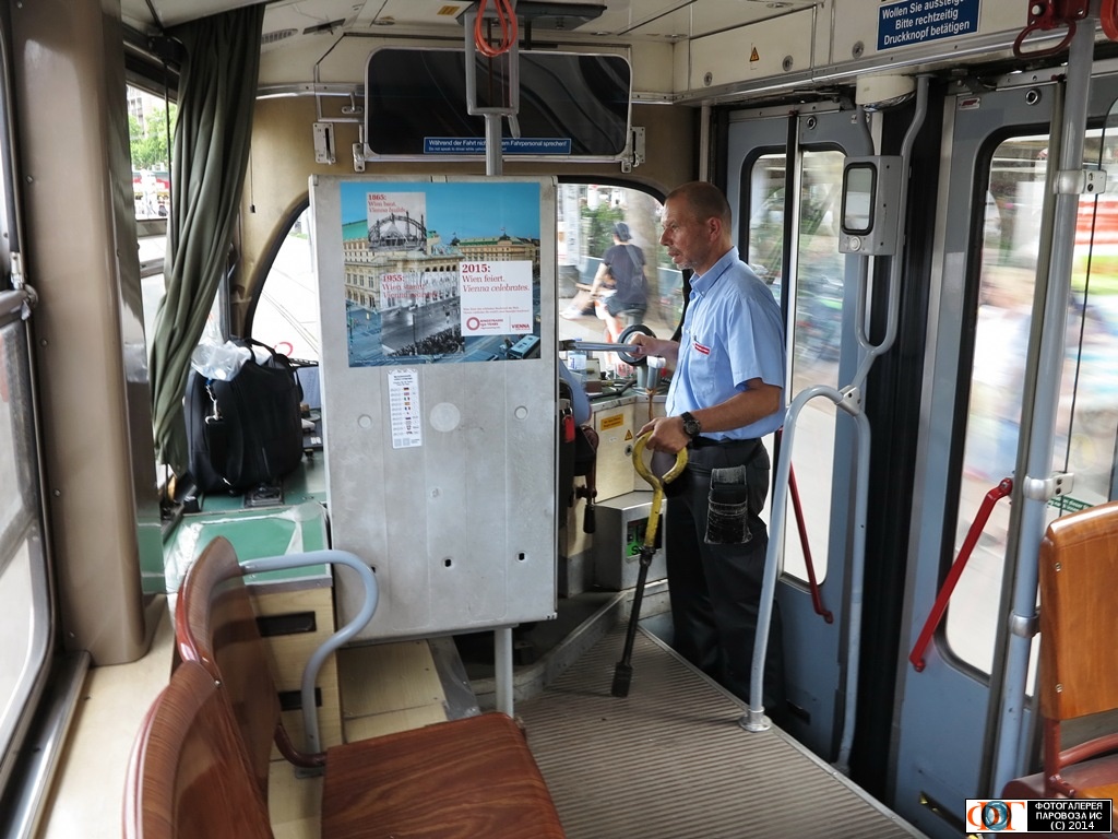 | Помошник вогоновожатого трамвая SGP Тип Е1 №4867, маршрут R, Шведенплатц, Вена, Австрия Автор: ВИКТОР | Фото сделано 14.VII.2014, опубликовано 19.VII.2014.
