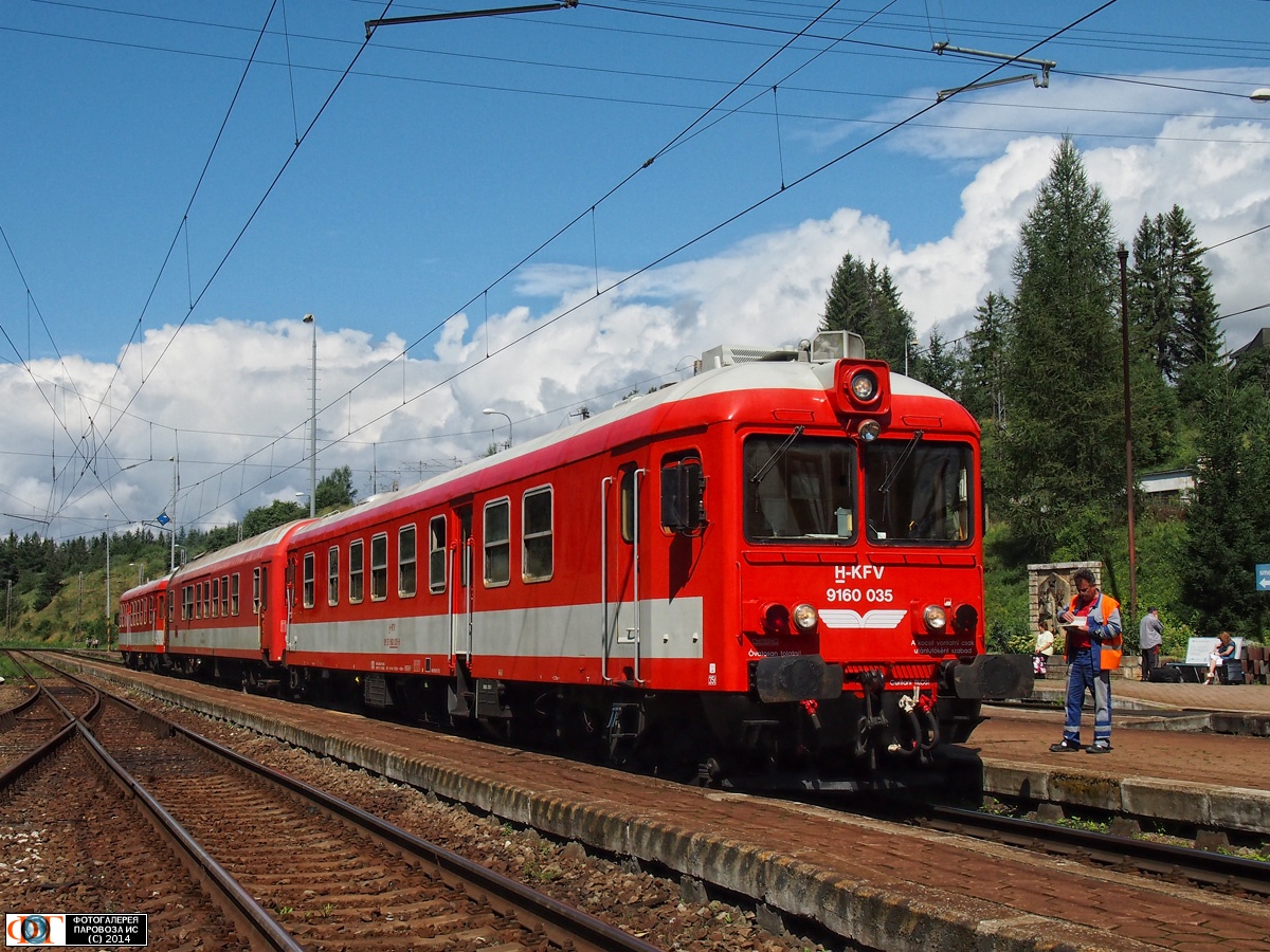 | Служебный дизель-поезд ультразвуковой диагностики пути H-KFV 9160.035 на станции Штрба, Словакия Автор: Shpalolaz | Фото сделано 15.VIII.2014, опубликовано 28.X.2014.