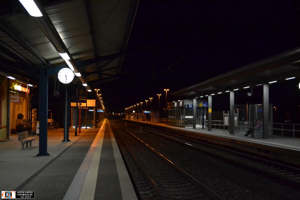 | Станция Грайфсвальд, вид в сторону Цюссова, Германия/Мекленбург-Померания Автор: Viggen | Фото сделано 8.XI.2014, опубликовано 10.XI.2014.