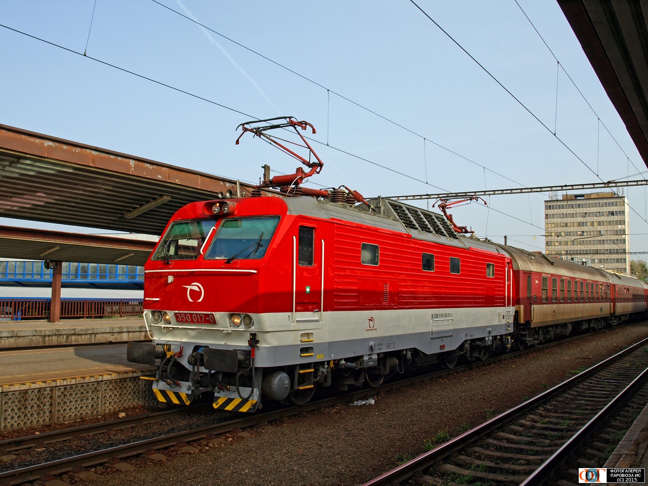 | Электровоз 350.017-0 с пассажирским поездом на станции Кошице, Словакия Автор: Shpalolaz | Фото сделано 27.IV.2013, опубликовано 12.I.2015.