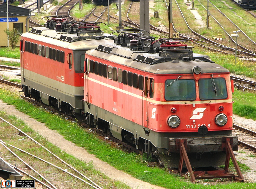 | Электровозы 1142-542 и 1142-563 на боковых путях депо Вена-Западная, Австрия Автор: Женя | Фото сделано 26.VIII.2014, опубликовано 24.IV.2015.