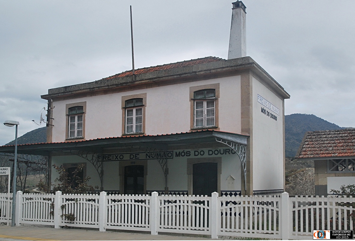 | Здание вокзала станции Фрейшу-де-Нумау - Мош-ду-Дору (Freixo de Numão - Mós do Douro), Португалия Автор: Сергей Холодилов | Фото сделано 21.III.2015, опубликовано 21.V.2015.