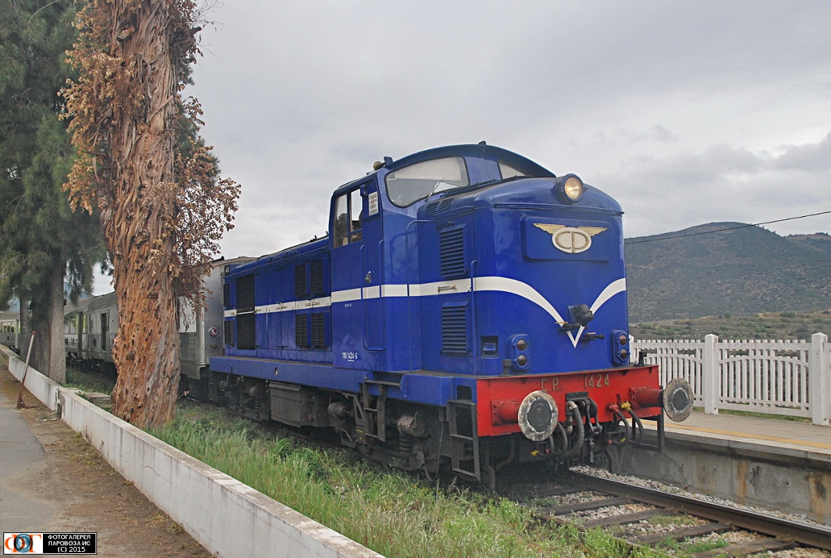 | Тепловоз № 1424 с туристическим поездом на ст. Фрейшу-де-Нумау - Мош-ду-Дору (Freixo de Numão - Mós do Douro), Португалия Автор: Сергей Холодилов | Фото сделано 21.III.2015, опубликовано 22.V.2015.