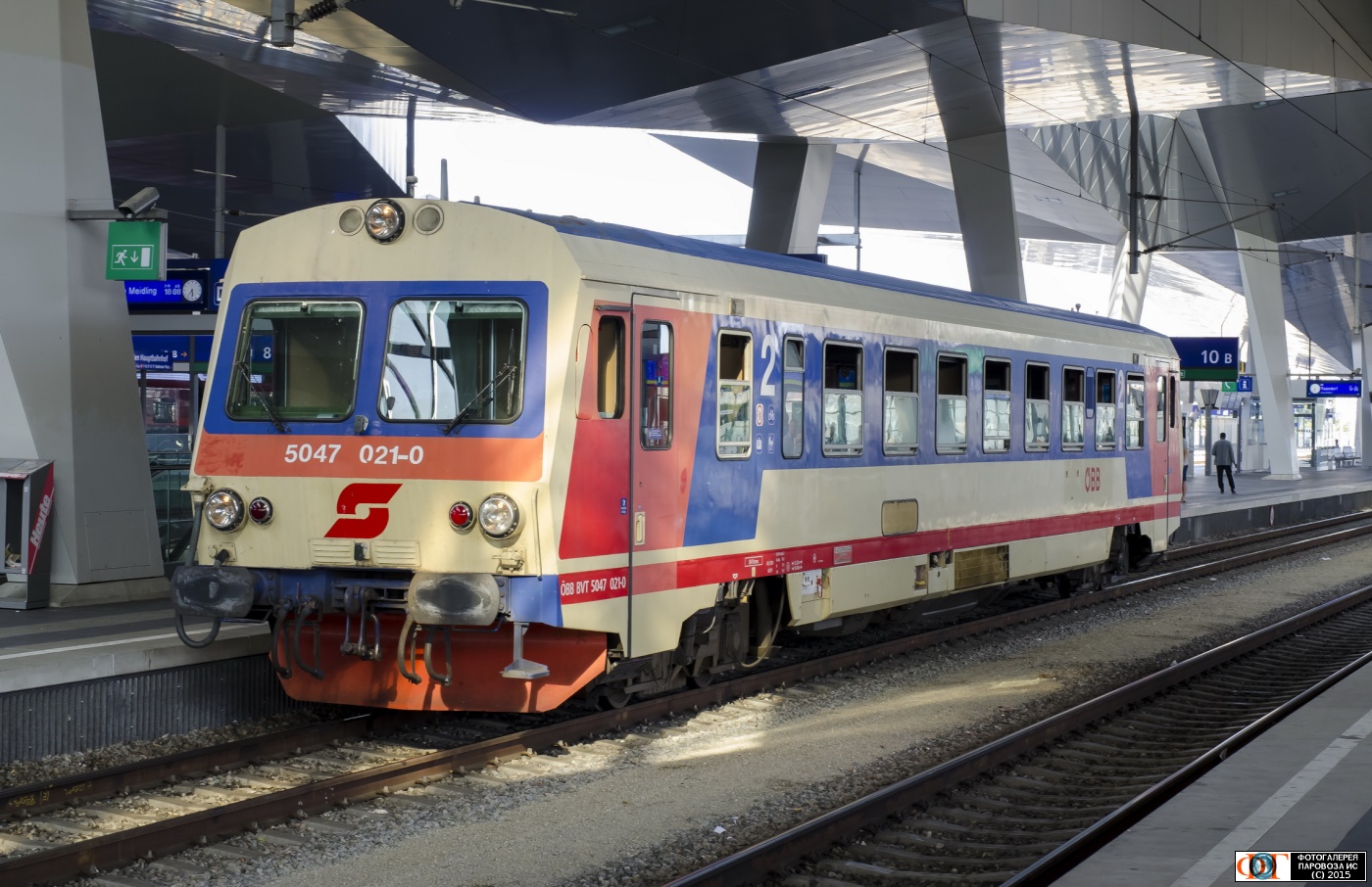 | Автомотриса 5047.021-0 на станции Вена-Главный вокзал, Австрия Автор: ES499 | Фото сделано 1.VIII.2015, опубликовано 18.VIII.2015.