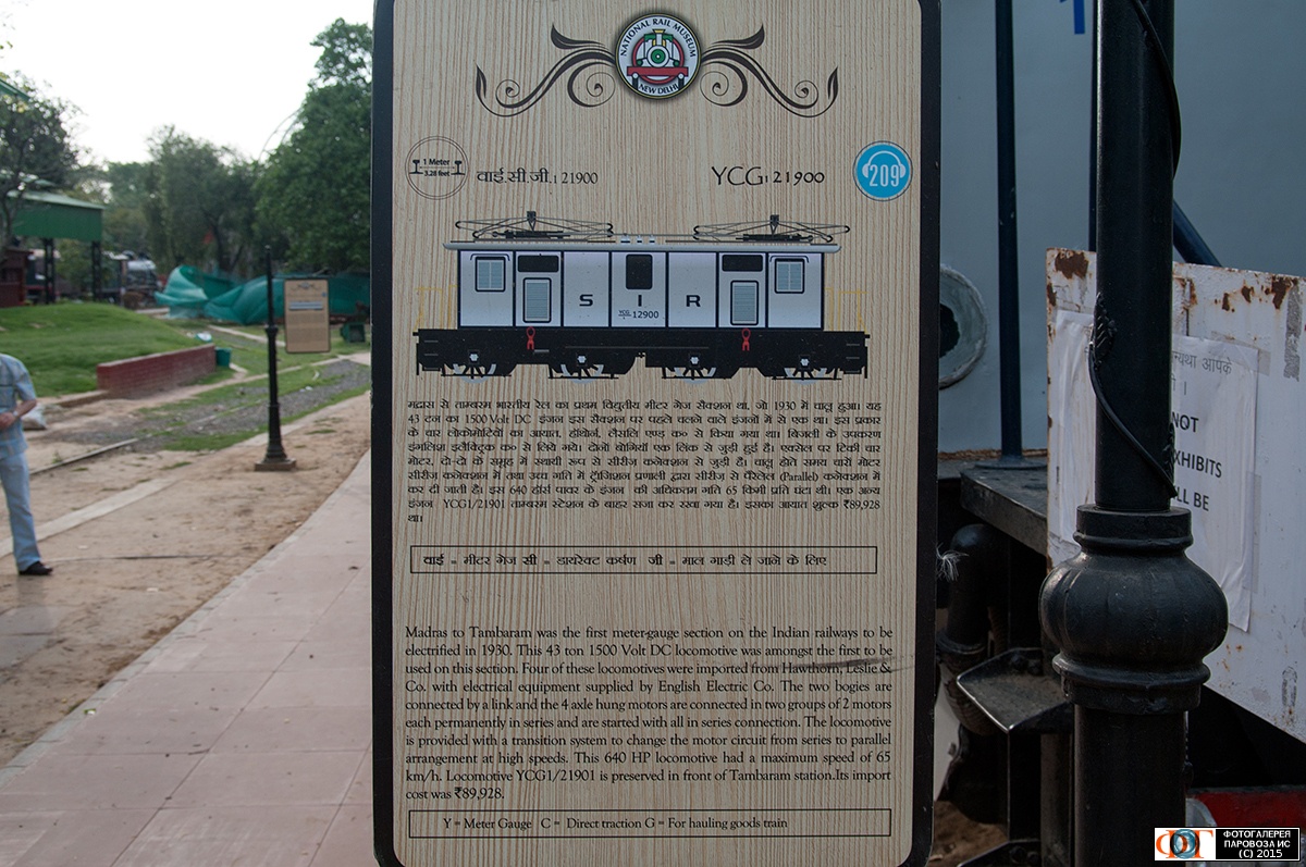 | Информационная табличка к электровозу YCG/1-21900, Национальный железнодорожный музей (National Rail Museum), Дели (New Delhi), Индия Автор: Щукин Д. | Фото сделано 16.IV.2015, опубликовано 9.X.2015.