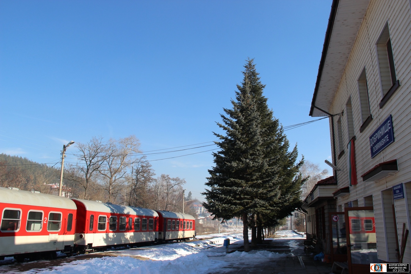 | Состав пассажирского поезда "Юндола" на станции Добриниште узкоколейной ж.д. линии Септември - Добриниште, Болгария Автор: Геннадий теплоходов | Фото сделано 28.I.2016, опубликовано 8.V.2016.