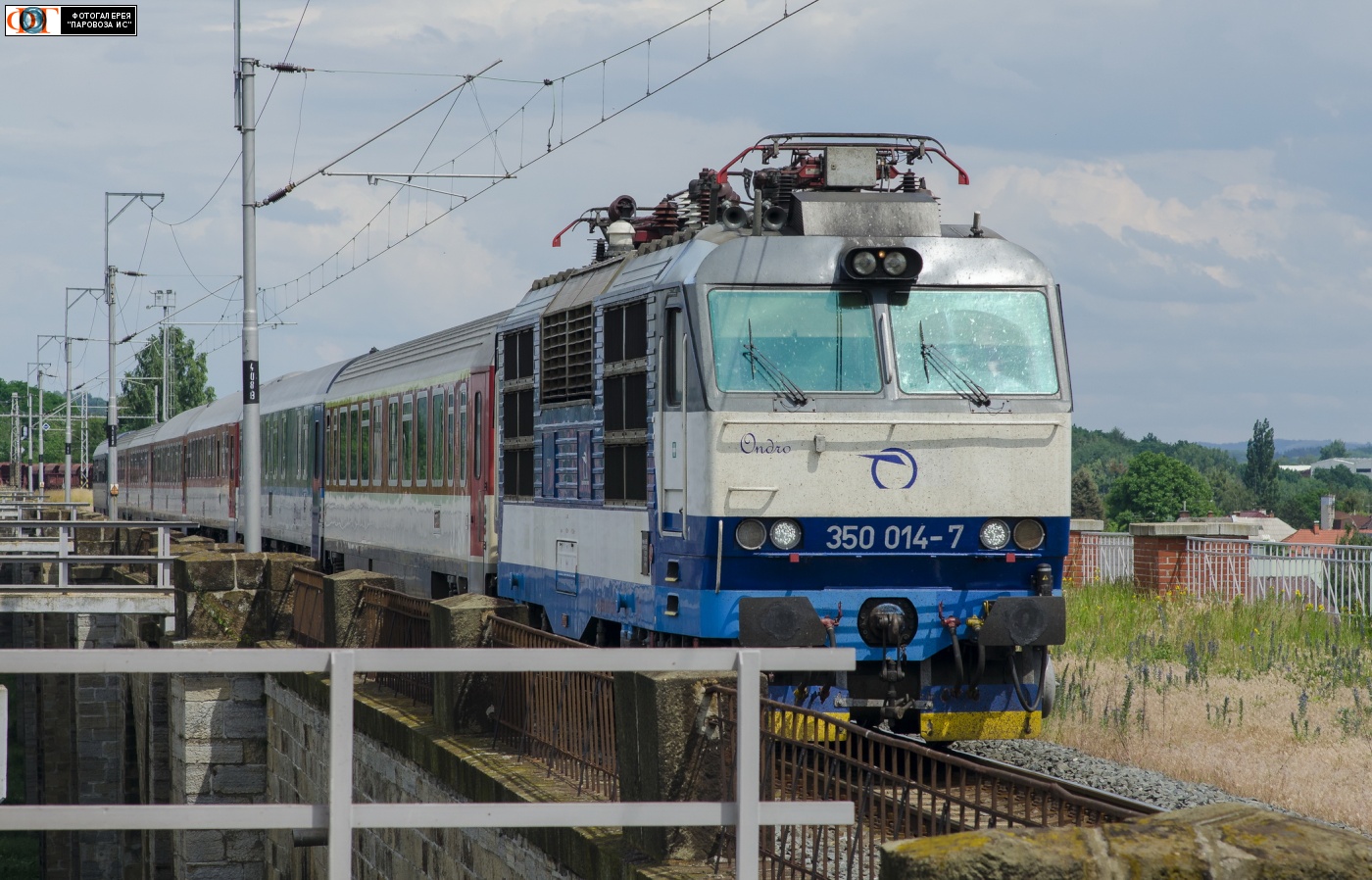 | Электровоз 350.014-7 "Ондро" с пассажирским поездом EC126 на перегоне Границе-на-Мораве - Драготуше, Чехия Автор: ES499 | Фото сделано 19.VI.2016, опубликовано 17.VII.2016.